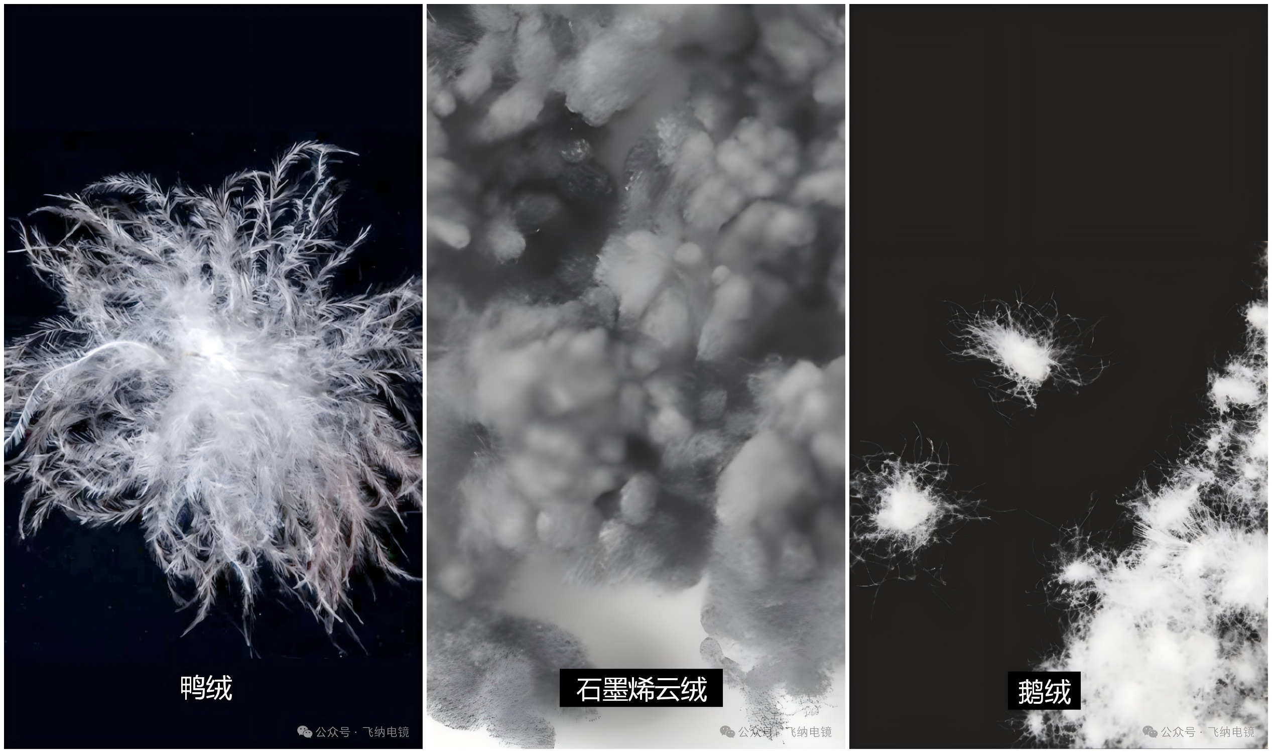 本期【飞纳三点半】直播,我们将多种常见羽绒服填充与功能材料——鸭绒、鹅绒、石墨烯云绒棉、石墨烯自发热布料、PP棉放进扫描电子显微镜下,从微观结构出发,一探究竟!