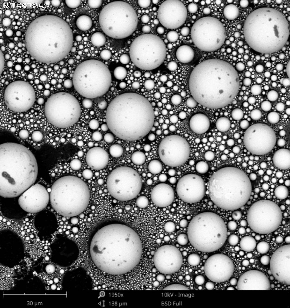 图片中锡球上的黑色物质是碳一类的污染物,可以看到背散射图像用亮暗对比,清晰地区分出了锡球上的污染物,而二次电子模式就无法做到这一点。